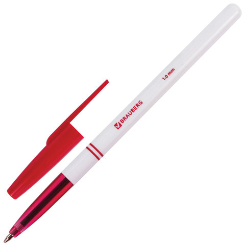 Ручка шариковая BRAUBERG "Офисная", КРАСНАЯ, корпус белый, узел 1 мм, линия письма 0,5 мм, 140892