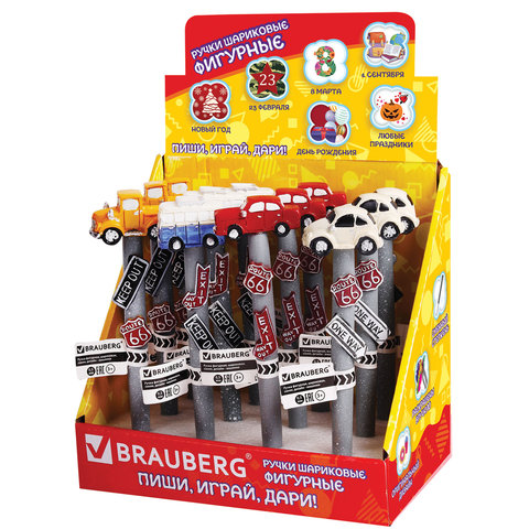 Ручка фигурная "МАШИНКИ", СИНЯЯ, 4 дизайна ассорти, 0,5 мм, дисплей, BRAUBERG, 142757