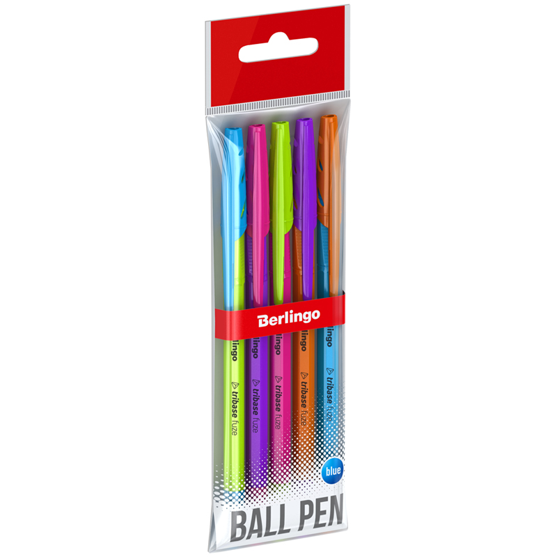 Ручка шариковая Berlingo "Tribase Fuze", синяя, 0,7мм, 5шт, пакет с европодвесом