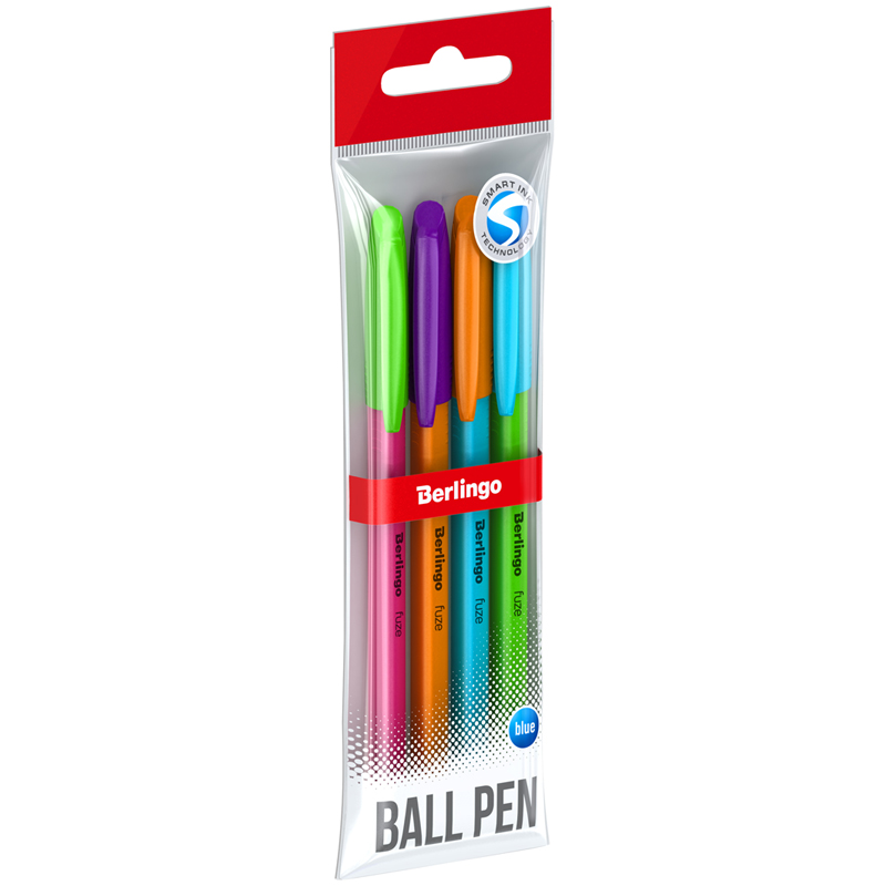 Ручка шариковая Berlingo "Triangle Fuze Stick", 0,5мм, синяя, корпус ассорти, 4шт, пакет