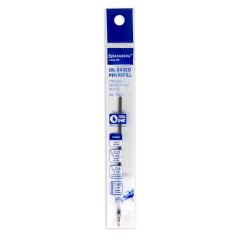Стержень шариковый масляный BRAUBERG "i-Rite GT" 140 мм, СИНИЙ, игольчатый узел 0,4 мм, линия письма 0,21 мм, 170377