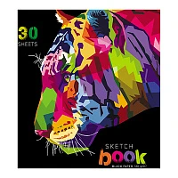 Скетчбук-блокнот 30л А5 на гребне ПЗБМ "Тигр в цвете", 120г/м2, черная, ТВИН-лак, тисн.фольг.