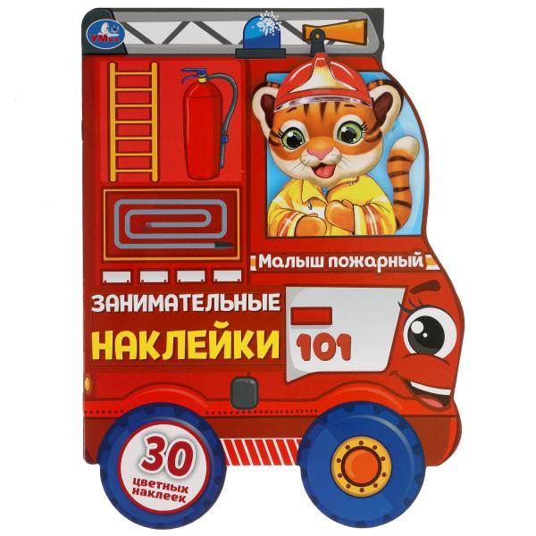 Малыш пожарный. Занимательные наклейки. 210х285 мм. 8 стр. с вырубкой, бумага мел. Умка