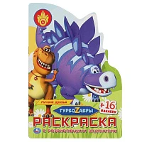 Турбозавры. Раскраска с вырубкой в виде персонажа и наклейками малого формата. Умка