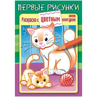 Раскраска-книжка с цветным контуром А5 Hatber "Первые рисунки. Кошечка с котенком", 16стр.