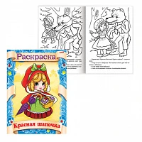 Книжка-раскраска А4, 8 л., HATBER, Сказка за сказкой, "Красная шапочка", 8Р4 0509, R70049
