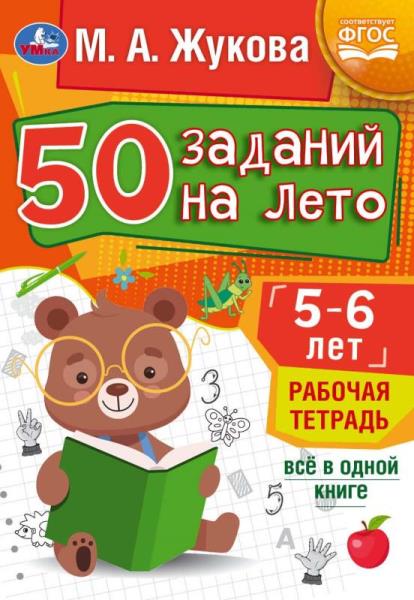50 заданий на лето: 5-6 лет. Жукова М. А. Рабочая тетрадь.145х210мм. Скрепка. 32стр. Умка