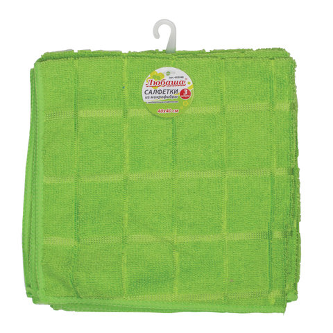 Салфетки универсальные, КОМПЛЕКТ 3 шт., микрофибра, квадратное тиснение, 40х40 см, зеленые, ЛЮБАША, 603948