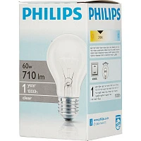 Лампа накаливания PHILIPS A55 CL E27, 60 Вт, грушевидная, прозрачная, колба d = 55 мм, цоколь E27, 354563