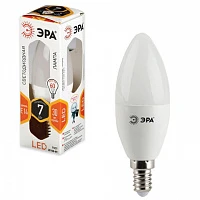 Лампа светодиодная ЭРА, 7 (60) Вт, цоколь E14, "свеча", теплый белый свет, 30000 ч., LED smdB35-7w-827-E14