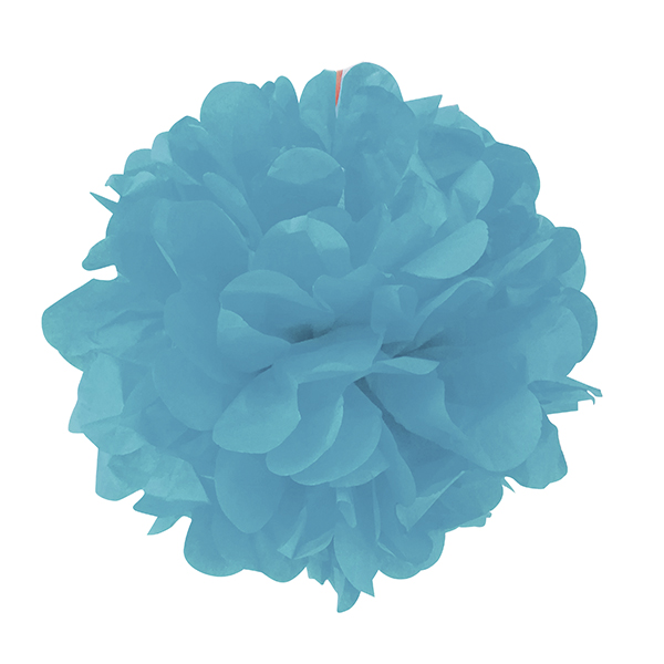 Нежно-голубой бумажный помпон станет отличным дополнением к оформлению любого торжества.