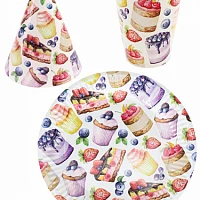 Набор для праздника Сладости (тарелка 6 шт, стаканы 6 шт, колпаки 6 шт) ФЛ-6205