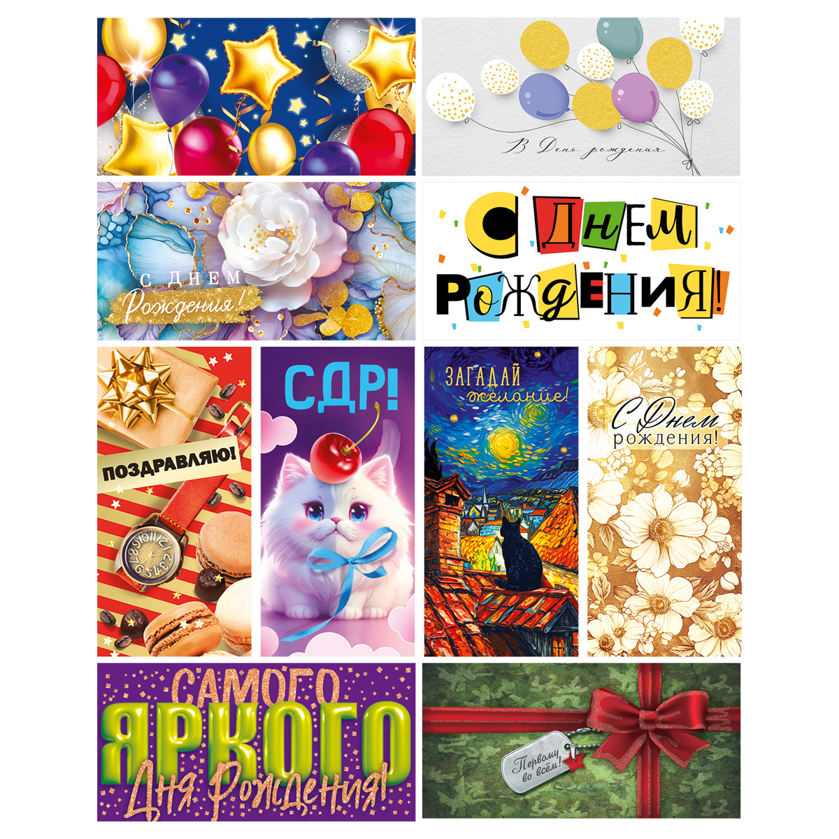 Красивая упаковка для денег, сделает подарок по-настоящему особенным и запоминающимся. Идеальный сюрприз на любое торжество! Конверты для денег с различными надписями на лицевой стороне. Отделка: блестки в лаке радужные. Фасовка 10 дизайнов по 10 шт. Размер изделия: 84*168 мм.