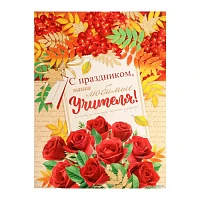 Плакат "С Праздником, наши любимые учителя!" розы, рябина, 50х70см