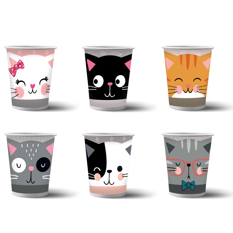 Набор бумажных стаканов Кошки с ушками, 6шт*250 мл.