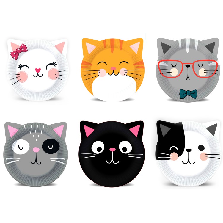 Набор бумажных тарелок Кошки с ушками, 6 шт d=180 мм.
