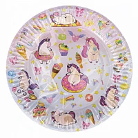 Тарелка бумажная Единороги-сладости (17 см, 6 шт) флоупак ФЛ-7470