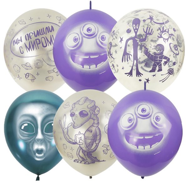 12"/30см Набор шаров ассорти рис. Инопланетяне 25шт