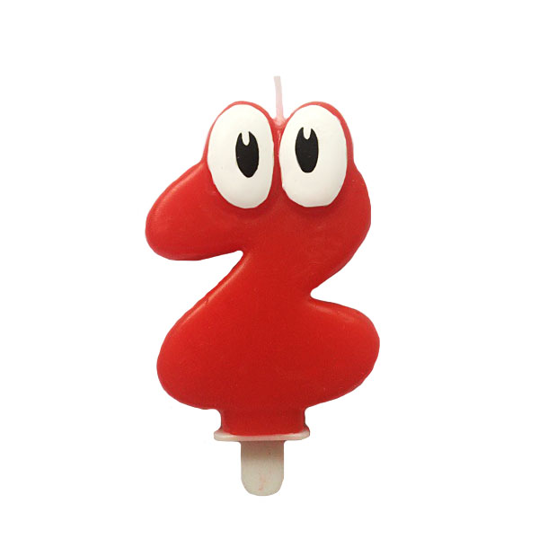 Свеча Цифра 2 Красная С глазками 6,5см