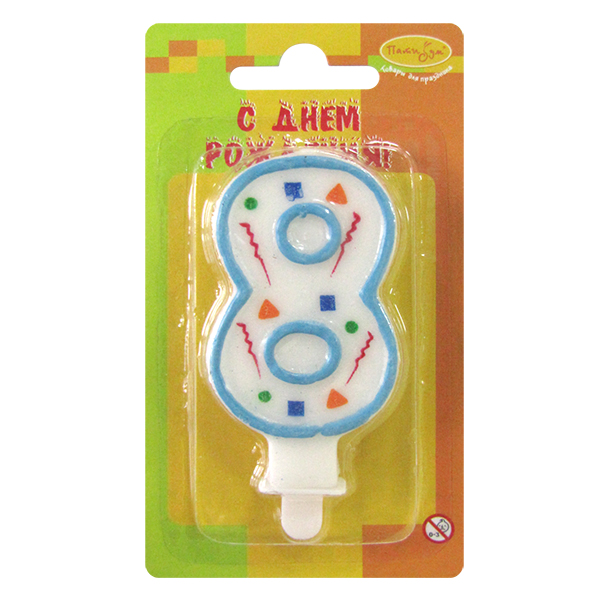 Декоративные свечи для торта. Оригинальные свечи в форме цифры 8 из коллекции свечей голубое конфетти. Отличное решение для праздничного украшения торта, оформления дессерта ко Дню рождения или юбилею. Свечи цифры для торта отличаются высоким качеством. Высота таких свечей для торта составляет 7см. Температура хранения и транспортировки от -10? до +25?.