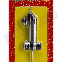 Свеча для торта Серебряный металлик (большая) Цифра 1 С-1873