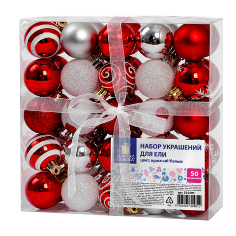 Шары елочные НАБОР 50 предметов "Red & Snow Winter", пластик, красный/белый, ЗОЛОТАЯ СКАЗКА, 592595