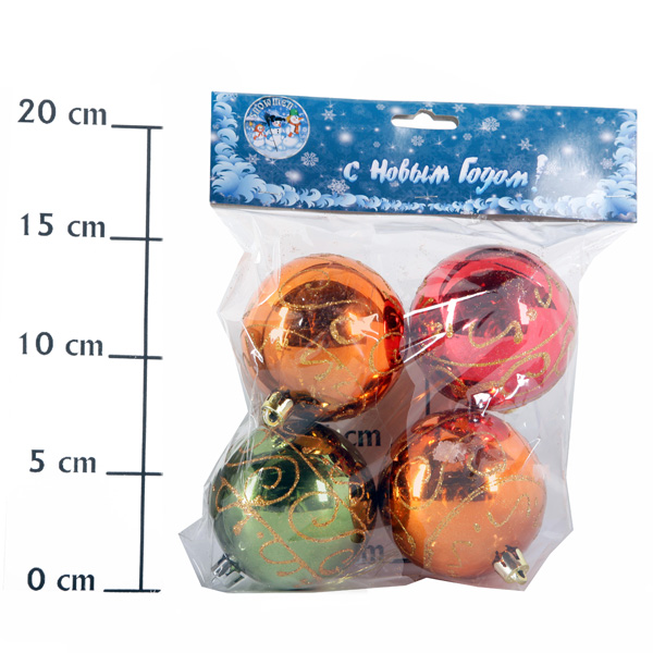 Новогодний шар узор матовый 7см 4 цвета 4шт. в пак.