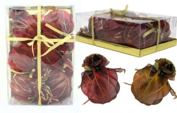 Новогодний шар метал.каркас,обтянут.материалом 8см 6шт.в ПВХ 3 цвета