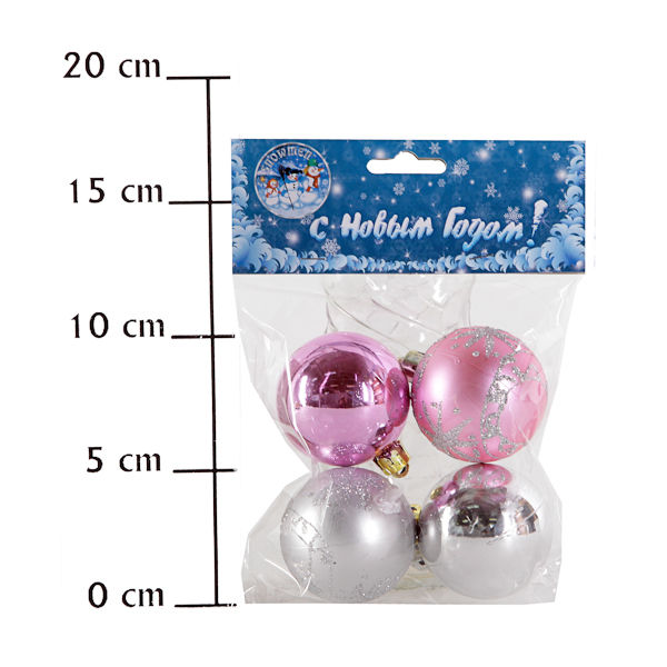 Новогодний шар 4шт. (мат с широкой полосой и цветком,блест) 6см 4 цвета в пак.