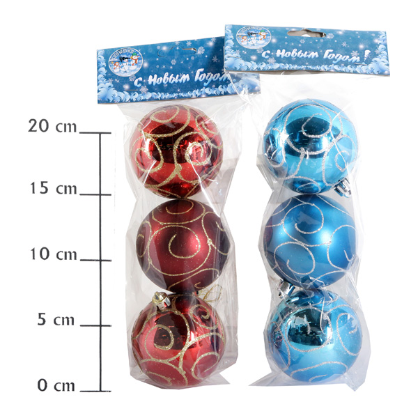 Новогодний шар завитки со стразами(блест./мат) 7см 3шт.в пак.2 цвета
