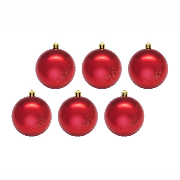 Новогодний шар пластик блест.d=7см 6шт в пакете красный