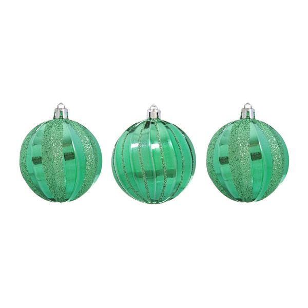 Новогодний шар меридиан зеркал.7см 3шт. в пвх зелён.цв. Е96172