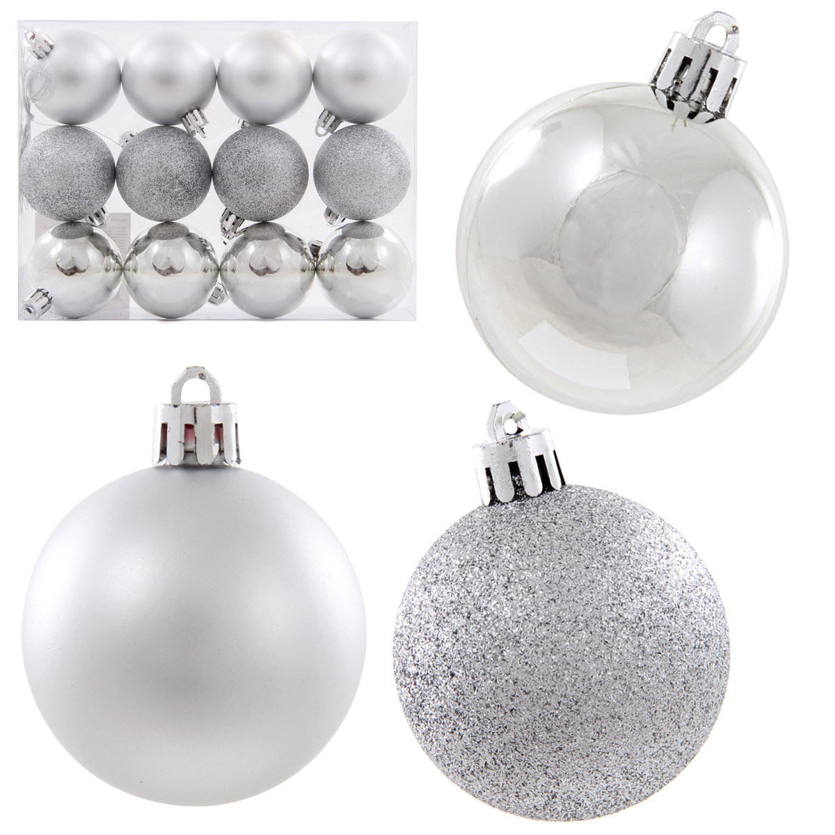 Набор из 12-ти пластиковых шаров, 5 см, цвет-серебряный