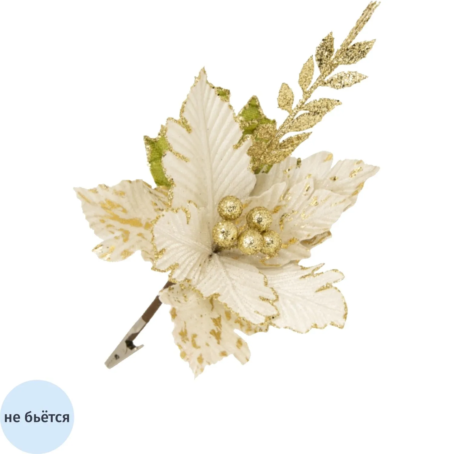 Украшение НГ ёлочное Белый с веткой цветок из полиэст 28x28x18см арт.88686