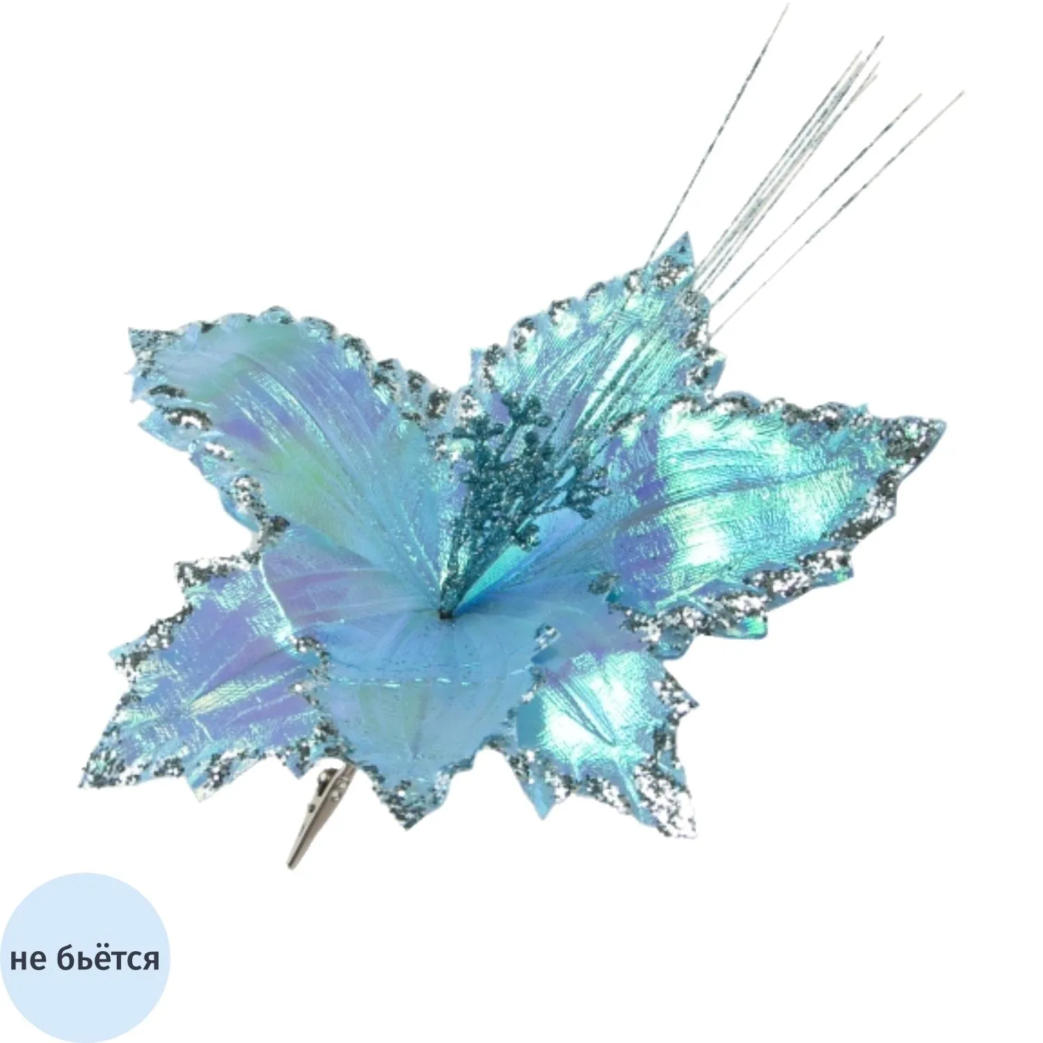 Украшение НГ ёлочное Лилия голубой полиэстер,на клипсе 33x33x33см арт.88882