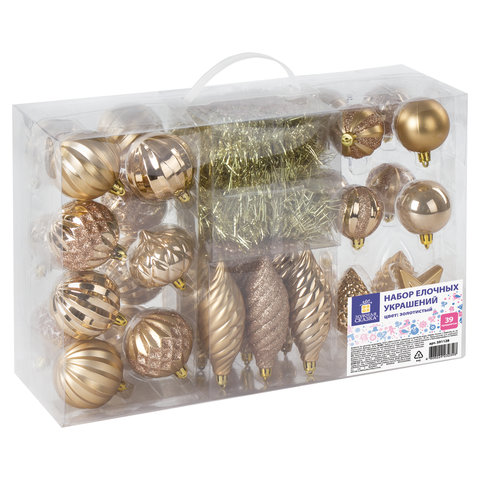 Набор украшений для ели ЗОЛОТАЯ СКАЗКА, 39 предметов, золотистый цвет, 591128