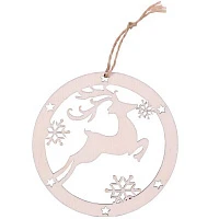Подвеска новогодняя деревянная "Шарик с оленем" 2шт