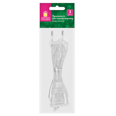 Удлинитель для электрогирлянд 3 м, прозрачный шнур, пакет, ЗОЛОТАЯ СКАЗКА, 592554
