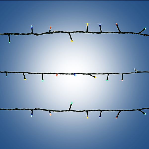 Новогодняя электрогирлянда рис-шарик 7мм прозр.100л.LED многоцв.,зелёный кабель 5.2м+1.5м до розетки Е96350