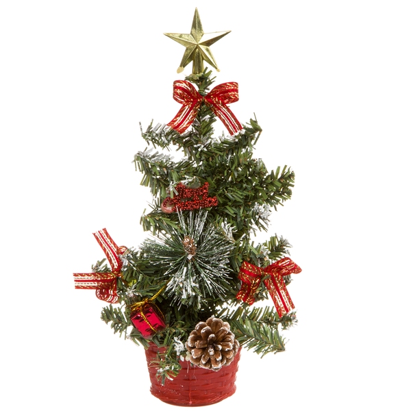 Новогодняя ёлка украшение, 25см., с инеем шары, банты, шишки, звезда подст.-корзина (красный цв.)