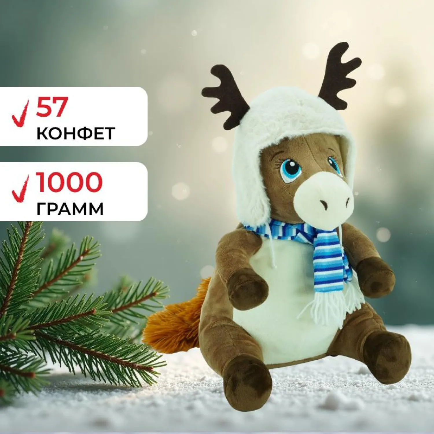Новогодний сладкий подарок Азбука Праздника Волшебник 1000 г Милый плюшевый «Волшебник» радует глаз своей красивой шапкой и шарфом. Эта прекрасная мягкая игрушка надолго станет другом и спутником вашего ребёнка. Игрушка такая мягкая, что так и хочется её потискать. Внутри целый килограмм вкусностей! Размер упаковки: 20?19?26 см. Вес: 1000 г. Вес упаковки: 100 г. Срок годности от даты производства указан на упаковке и составляет 6 месяцев. Состав кондитерского набора: 1. Батончик халва подсолнечная в ассортименте 50 г (Тимоша) — 2 шт. 2. Конфета Бельгийский десерт 23 г (Невский кондитер) — 1 шт. 3. Конфета Пломбирный восторг 14 г (Азовская КФ) — 2 шт. 4. Конфета Шерил сливочный вкус 20 г (Невский кондитер) — 2 шт. 5. Карамель Кремка со вкусом клубники и сливок KDV 6 г — 2 шт. 6. Конфета Щелкунчик с хрустящими вафлями 13 г (Объединённые кондитеры)- 1 шт 7. Конфета Сказочная птица 15 г (Объединённые кондитеры) — 1 шт. 8. Конфета Сладкая капля 13 г (ПАО «Красный Октябрь») — 1 шт. 9. Конфета Марсианка три шоколада 9 г (Сладкий орешек) — 1 шт. 10. Конфета Марсианка Чизкейк 9 г (Сладкий орешек) — 1 шт. 11. Конфета Sharlet трюфель 5,4 г (Сладкий орешек) — 1 шт. 12. Конфета «Доярушка» 12,1 г (Essen) — 2 шт. 13. Конфета Bora-Bora лимон 16 г (Сладкий орешек) — 1 шт. 14. Конфета Bora-Bora кокос 16 г (Сладкий орешек) — 1 шт. 15. Конфета Т. Рюффель со вкусом трюфеля и кокоса 16 г (ОАО «Рот Фронт») — 1 шт. 16. Конфета Лукоморье Mini 20 г (Essen) — 1 шт. 17. Конфета Шокозаврики 37,6 г (Essen) — 1 шт. 18. Конфета Ромашки лютики глазированные кондитерской глазурью 15 г (Объединённые кондитеры) — 2 шт. 19. Конфета Полюшко с вафлями 15 г (ПАО «Красный Октябрь») — 2 шт. 20. Конфета Фруктовый сад цитрон 15,1 г (Объединённые кондитеры)- 2 шт 21. Конфета Красный Октябрь со вкусом шоколада 14,9 г (Объединённые кондитеры) — 2 шт. 22. Конфета Морские просторы 14,9 г (Объединённые кондитеры) — 2 шт. 23. Конфета Манёвр нуга с карамелью 32,5 г (Невский кондитер) — 2 шт. 24. Карамель с соком и фруктово-ягодной начинкой ассорти 6 г (KDV) — 2 шт. 25. Конфета Тёмная ночь 20 г (Невский кондитер) — 2 шт. 26. Конфета Melory лимонный курд — клубника 11г (KDV) — 2 шт. 27. Конфета Белая черёмуха 15 г (KDV) — 2 шт. 28. Конфета Му-Муйка 13 г (KDV) — 1 шт. 29. Конфета глазированная мягкая карамель и нуга Rodeo/Родео 15 г (KDV) — 1 шт. 30. Конфета Волшебная лампа 16 г (Невский кондитер) — 2 шт. 31. Конфета Французский десерт со вкусом клубники 22 г (Невский кондитер) — 2 шт. 32. Конфета Белкин лес 12,3 г (Азовская КФ) — 2 шт. 33. Конфета Дольче груша 12,5 г (Азовская КФ) — 2 шт. 34. Конфета Super с нугой и мягкой карамелью 40 г КДВ (KDV) — 2 шт. 35. Печенье-сэндвич Трио Джуниор с начинкой ванильный бум, 45 г (АО «Акконд») — 1 шт. 36. Карамель леденцовая «Nanobons» 4 г (Азовская КФ) — 2 шт. Итого сладостей 57 шт. Внимание! Состав конфет в наборе может быть заменён на аналогичные позиции, в случае отсутствия у фабрики указанной Конфета на момент фасовки набора. Замена Конфета происходит с сохранением категории, ценового сегмента и вкусовых характеристик.