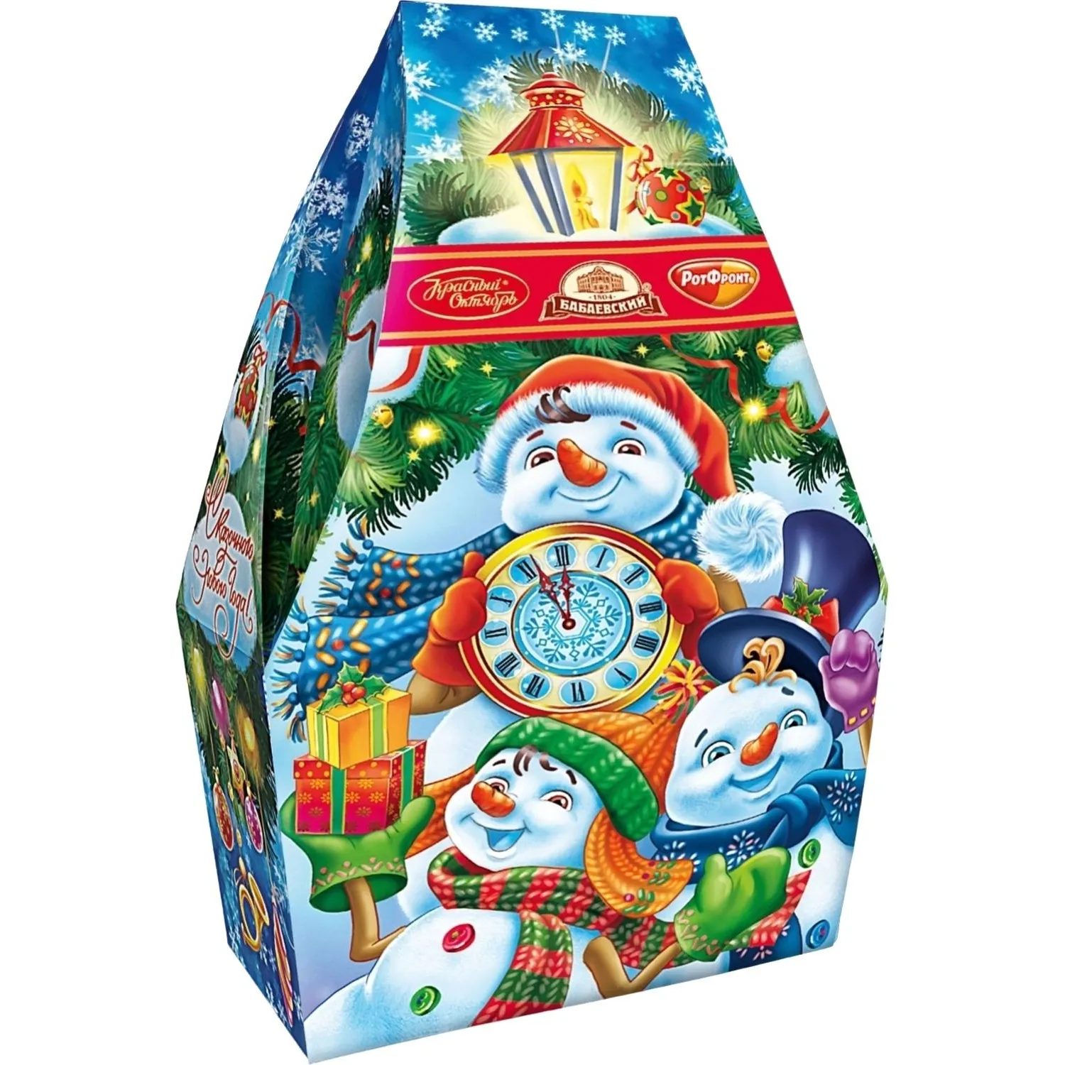 Новогодний сладкий подарок Рот Фронт Волшебство 1003 г Новогодний сладкий подарок «Волшебство» — это яркая картонная коробка с большим ассорти любимых сладостей. Внутри собраны шоколадные, вафельные, карамельные и желейные конфеты, плитки шоколада, зефир и драже. Такой набор станет отличным угощением для детей и взрослых и порадует разнообразием вкусов на новогоднем столе. Производитель «Объединённые кондитеры». В набор входят: 1. Конфета «Цитрон» 14.7 г — 2 шт. 2. Конфета «Морские» 14.7 г — 2 шт. 3. Конфета «Буретник» 14.7 г — 2 шт. 4. Конфета «Киви» 14.7 г — 2 шт. 5. Конфета «Бабаевские шоколадный вкус» 13.9 г — 2 шт. 6. Конфета «Нива» 14.9 г — 2 шт. 7. Конфета «Батончики Рот Фронт» 15.1 г — 2 шт. 8. Ирис «Кис кис» 6.3 г — 2 шт. 9. Драже «Изюм в шоколадной глазури» 50 г — 1 шт. 10. Карамель «Барбарис» 5.9 г — 3 шт. 11. Карамель «Дюшес» 5.9 г — 3 шт. 12. Карамель «Лимонная» 6.7 г — 3 шт. 13. Карамель «Апельсиновая» 6.7 г — 3 шт. 14. Конфета «Бабаевские Трюфельный крем» 11.2 г — 3 шт. 15. Конфета «Маска» 13.9 г — 2 шт. 16. Конфета «Фонарики вкус варёная сгущёнка» 10.4 г — 2 шт. 17. Конфета «Ну-ка, отними вкус шоколадный крем» 10.4 г — 2 шт. 18. Конфета «Семейка сов» 10.4 г — 2 шт. 19. Конфета «Желейные со вкусом апельсина» 14.3 г — 2 шт. 20. Конфета «Матрёшка с ореховым вкусом» 31.5 г — 2 шт. 21. Конфета «Картошка» 13.3 г — 2 шт. 22. Конфета «Восточный грильяж» 13.3 г — 2 шт. 23. Конфета «Вафельные конфеты Коровка вкус Шоколад» 13.3 г — 2 шт. 24. Конфета «Вафельные конфеты Коровка Молочная» 13.3 г — 2 шт. 25. Конфета «Алёнка крем-брюле купол» 11.5 г — 1 шт. 26. Шоколад «Алёнка» 15 г — 2 шт. 27. Конфета «Ласточка» 14.7 г — 2 шт. 28. Конфета «Птичье молоко сливочно-ванильные» 14.1 г — 1 шт. 29. Конфета «Желейные барбарисовый вкус» 14.3 г — 1 шт. 30. Конфета «Кара Кум» 14.8 г — 1 шт. 31. Конфета «Красная шапочка» 13.9 г — 1 шт. 32. Конфета «Мишка косолапый» 13.9 г — 1 шт. 33. Шоколад «Бабаевский оригинальный» 75 г — 1 шт. 34. Зефир «Сладкие истории с чёрной смородиной в шоколадной глазури» 30 г — 1 шт. 35. Конфета «Батончики Рот Фронт шоколадно-сливочный вкус» 14.9 г — 2 шт. 36. Конфета «Трюфели вкус имбирно-пряничный» 12.5 г — 3 шт. 37. Конфета «Трюфели» 11.8 г — 2 шт. Размер упаковки — 175?105?280 мм. Вес без упаковки: 1003 г. Вес упаковки: 40 г. Срок годности от даты производства указан на упаковке и составляет 6 месяцев. Коробка выполнена из прочного картона. Такой подарок станет вкусным сюрпризом и для детей, и для взрослых, добавив ярких впечатлений к новогоднему празднику. Внимание! Состав конфет в наборе может быть заменён на аналогичные позиции, в случае отсутствия у фабрики указанной конфеты на момент фасовки набора. Замена конфеты происходит с сохранением категории, ценового сегмента и вкусовых характеристик.