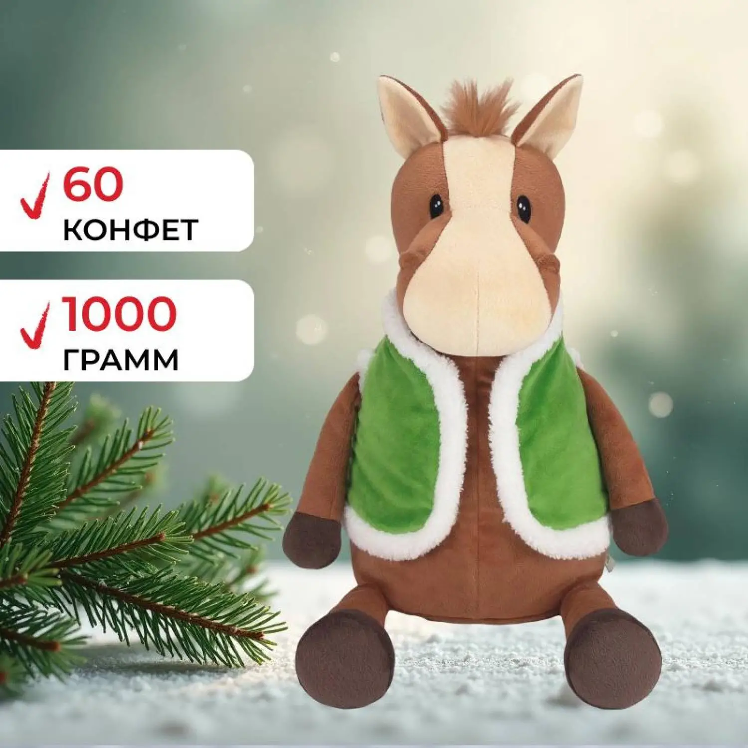 Новогодний сладкий подарок Ура!Подарки Грег 1000 г Подарок выполнен в виде мягкой игрушки из искусственного меха и текстильных материалов с элементами из пластмассы и металла. Внутри корпуса предусмотрен потайной карман на молнии, в котором размещается кондитерская начинка. Размер изделия составляет 310?190?180 мм. Дополнительно в комплект входит пакет. Вес сладкого набора без учёта упаковки — 1000 г, общий вес вместе с игрушкой — 1150 г. Срок годности от даты производства указан на упаковке и составляет 4 месяца. Состав кондитерского набора: — Картошка (Рот Фронт) 15 г — 1 шт. — Желейные барбарис (Красный Октябрь) 14 г — 1 шт. — Ёшкина коровка супер сгущёнкаёнка (Рот Фронт) 16 г — 1 шт. — Степ золотой (Славянка) 21 г — 2 шт. — Томилка (Акконд) 11 г — 1 шт. — Конфета Трио (Акконд) 19 г — 2 шт. — Трамвайчик (Акконд) 10 г — 2 шт. — Амбрель (Акконд) 23 г — 2 шт. — Прохлада (Акконд) 14 г — 2 шт. — Муррлинка со вкусом дыни и клубники (Акконд) 15 г — 2 шт. — Ореховые (Славянка) 13 г — 1 шт. — Toffee Premio (Красный Октябрь) 16 г — 2 шт. — Ярмила (Акконд) 15 г — 2 шт. — Степ десерт с печеньем (Славянка) 19 г — 2 шт. — Батончик (Рот Фронт) 14 г — 1 шт. — Лёвушка (Славянка) 14 г — 2 шт. — Фру 7 (в ассортименте) (Акконд) 10 г — 2 шт. — Медунок карамель, арахис и печенье (Славянка) 19 г — 2 шт. — Астрон нуга и карамель (Акконд) 19 г — 2 шт. — Халветта (Акконд) 13 г — 2 шт. — Отважный комарик (в ассортименте) (Акконд) 11 г — 2 шт. — Зачарованные (Акконд) 17 г — 2 шт. — Конфеты от Красули (Акконд) 13 г — 2 шт. — Голубкина весточка (Акконд) 15 г — 2 шт. — Золотая пора (Акконд) 13 г — 2 шт. — Капелька (в ассортименте) (Акконд) 9 г — 2 шт. — Лесной олень (Акконд) 15 г — 1 шт. — Молочная речка (в ассортименте) (Акконд) 9 г — 1 шт. — Мономикс (Акконд) 10 г — 2 шт. — Марс минис (Марс) 13 г — 1 шт. — Твикс минис (Марс) 9 г — 1 шт. — Птица Зимолюбка (Акконд) 32 г — 1 шт. — Зефир «Обожайка» (Пензенская КФ) 30 г — 1 шт. — Xrust&Go (в ассортименте: кокос, арахис) (Коломенский) 30 г — 1 шт. — Фараделла (Акконд) 46 г — 1 шт. — Шоколадница (в ассортименте: кокос, арахис) (Коломенский) 15 г — 1 шт. — Мармелад (в ассортименте) (Славянка/Азовская КФ) 67 г — 1 шт. — Чувики жевательная конфета (Конфитрейд) 10 г — 1 шт. — Карамель на палочке (Конфитрейд) 11 г — 1 шт. Внимание! Состав конфет в наборе может быть заменён на аналогичные позиции, в случае отсутствия у фабрики указанной конфеты на момент фасовки набора. Замена конфеты происходит с сохранением категории, ценового сегмента и вкусовых характеристик.
