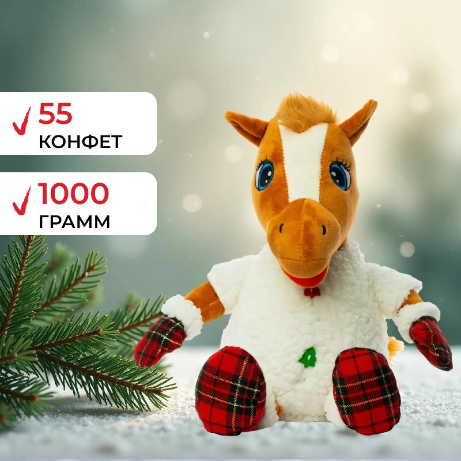 Новогодний сладкий подарок Лошадка Сахарок Игрушка 1000 грамм, K067