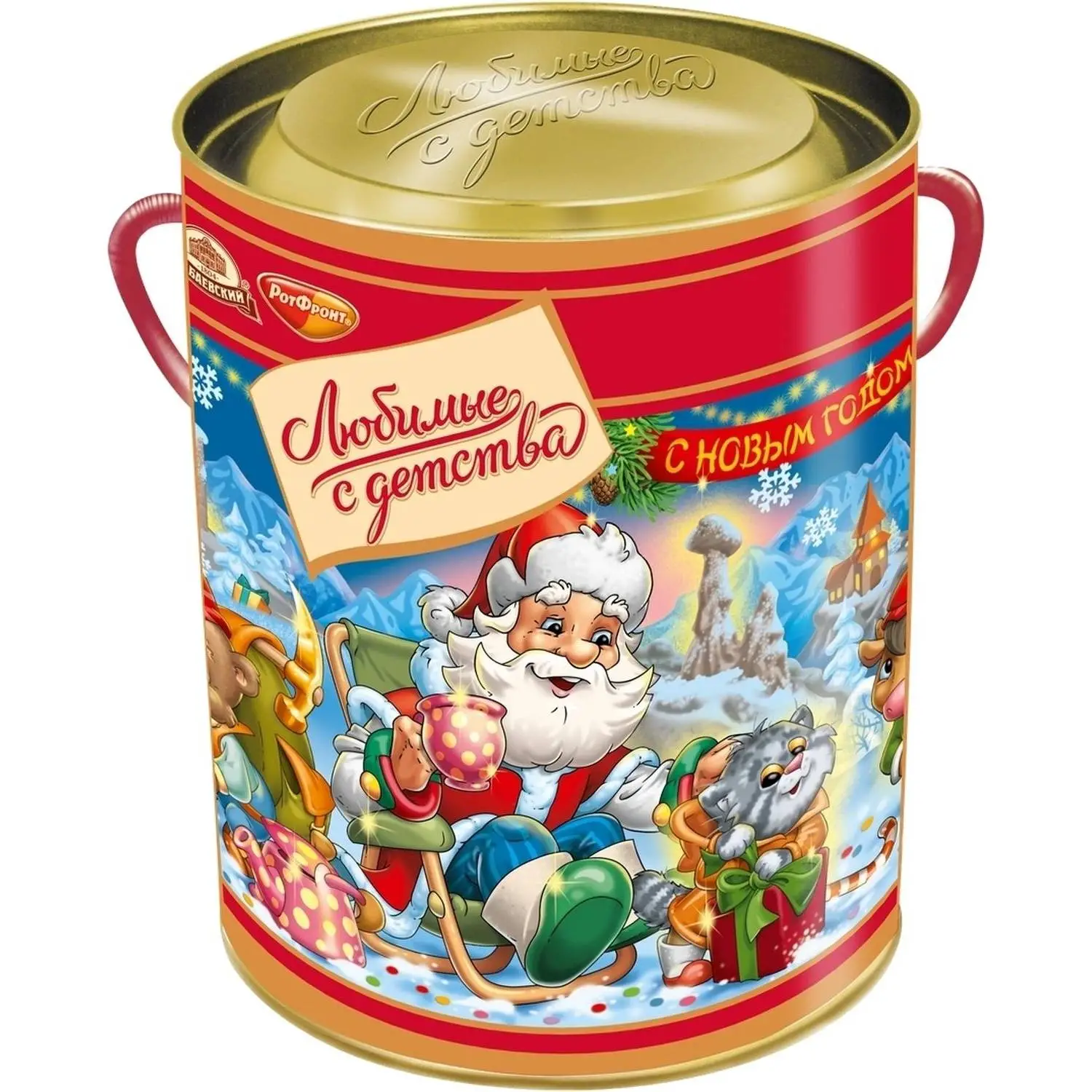 Новогодний сладкий подарок Рот Фронт Любимые с детства 501 г Стильная туба с жестяной крышкой, напоминающая подарки 50-х годов, которая содержит конфеты известных российских фабрик. Подарок станет отличным выбором как для детей, так и для взрослых, благодаря разнообразию сладостей, которые погружают в атмосферу ностальгии. Производитель «Объединённые кондитеры». В упаковке 36 конфет, среди которых: 1. Карамель «Лимончики» 5.8 г — 3 шт. 2. Карамель «Москвичка» 11.1 г — 2 шт. 3. Ирис «Золотой ключик» 5.8 г — 2 шт. 4. Ирис «Кис кис» 6.3 г — 1 шт. 5. Конфеты «Бабаевские» шоколадный вкус 13.9 г — 1 шт. 6. Конфеты «Маска» 15 г — 2 шт. 7. Конфеты «Петушок золотой гребешок» 14.8 г — 2 шт. 8. Конфеты «Мишка косолапый» 13.9 г — 2 шт. 9. Конфеты «Ласточка» 14.7 г — 2 шт. 10. Конфеты «Кара Кум» 14.8 г — 2 шт. 11. Конфеты «Мама приехала» 13 г — 2 шт. 12. Конфеты «Красная шапочка» 13.9 г — 2 шт. 13. Конфеты «Грильяж в шоколадной глазури» 14.9 г — 2 шт. 14. Конфеты «Фонарики вкус варёная сгущёнка» 10.4 г — 2 шт. 15. Конфеты «Ну ка отними вкус шоколадный крем» 10.4 г — 2 шт. 16. Конфеты «Семейка Сов» 10.4 г — 2 шт. 17. Вафельные конфеты «Коровка вкус Шоколад» 13.3 г — 1 шт. 18. Вафельные конфеты «Коровка Молочная» 13.3 г — 1 шт. 19. Батончики «Рот Фронт» 15.1 г — 1 шт. 20. Шоколад «Алёнка» 20 г — 1 шт. 21. Вафли «Артек» 75 г — 1 шт. Размер упаковки: 121.5?155 мм. Упаковка изготовлена из картона. Вес без упаковки: 501 г. Вес упаковки: 21 г. Срок годности от даты производства указан на упаковке и составляет 6 месяцев. Подарок станет отличным вариантом для тех, кто ценит разнообразие вкусов и атмосферу старинных новогодних традиций. Внимание! Состав конфет в наборе может быть заменён на аналогичные позиции, в случае отсутствия у фабрики указанной конфеты на момент фасовки набора. Замена конфеты происходит с сохранением категории, ценового сегмента и вкусовых характеристик.