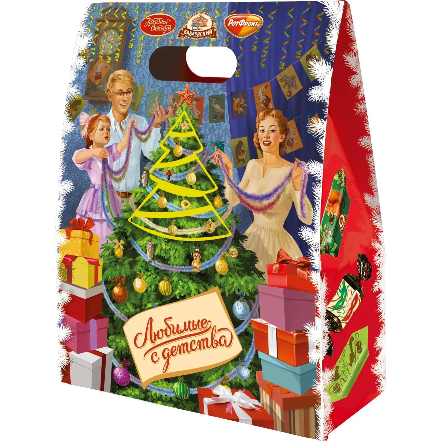 Новогодний сладкий подарок Рот Фронт Любимые с детства Ярмарка чудес 550 г Это картонный сундучок с новогодним рисунком, наполненный известными конфетами российских фабрик. Этот подарок — отличный выбор как для детей, так и для взрослых, погружающих в атмосферу детского восторга и новогодних чудес. Производитель «Объединённые кондитеры». В упаковке 34 конфеты, среди которых: 1. Ирис «Сказка Золотой ключик» 5 г — 2 шт. 2. Конфеты «Вдохновение» 15.2 г — 2 шт. 3. Конфеты «Визит» 15.2 г — 2 шт. 4. Конфеты «Петушок золотой гребешок» 14.8 г — 2 шт. 5. Конфеты «Птичье молоко сливочно-ванильные» 14 г — 1 шт. 6. Конфеты «Трюфели вкус имбирно-пряничный» 12.5 г — 1 шт. 7. Конфеты «Бабаевская Белочка» 15 г — 1 шт. 8. Конфеты «Маска» 15 г — 2 шт. 9. Конфеты «Полюшко с халвой» 15 г — 1 шт. 10. Батончики «Рот Фронт» 15 г — 2 шт. 11. Конфеты «Морской бриз» 15 г — 2 шт. 12. Конфеты «Весна» 15 г — 1 шт. 13. Конфеты «Нива с вафельной крошкой» 14.5 г — 1 шт. 14. Конфеты «Щелкунчик с хрустящими вафлями» 13 г — 2 шт. 15. Конфеты «Ласточка Вестница весны» 15 г — 2 шт. 16. Конфеты «Маков цвет» 15 г — 1 шт. 17. Конфеты «Ромашка» 15 г — 2 шт. 18. Конфеты «Буревестник» 15 г — 2 шт. 19. Конфеты «Грильяж в шоколадной глазури» 14.2 г — 1 шт. 20. Конфеты «Красная шапочка» 13.9 г — 1 шт. 21. Шоколад «Алёнка» 20 г — 1 шт. 22. Вафли «Обожайка с ароматом крем-брюле» 50 г — 1 шт. 23. Пряник «Тульский пряник смородина» 45 г — 1 шт. Коробка упаковки выполнена из картона и имеет размер 200?85?250 мм. Вес без упаковки составляет 550 г, вес упаковки — 78 г. Срок годности от даты производства указан на упаковке и составляет 6 месяцев. Этот набор подарит не только сладкое наслаждение, но и тепло новогоднего настроения с каждым угощением. Внимание! Состав конфет в наборе может быть заменён на аналогичные позиции, в случае отсутствия у фабрики указанной конфеты на момент фасовки набора. Замена конфеты происходит с сохранением категории, ценового сегмента и вкусовых характеристик.