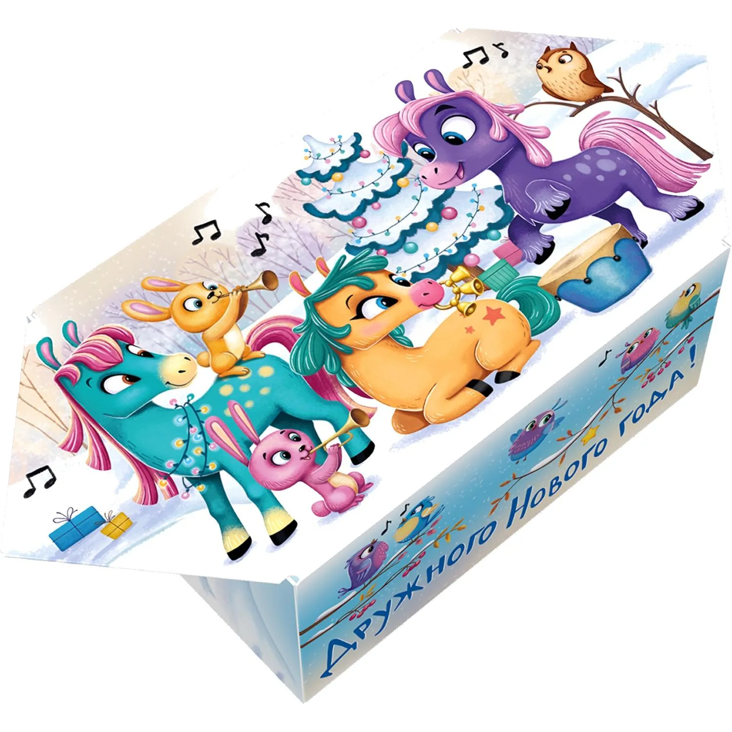 Новогодний сладкий подарок Озорные пони Картон 300 грамм, K045