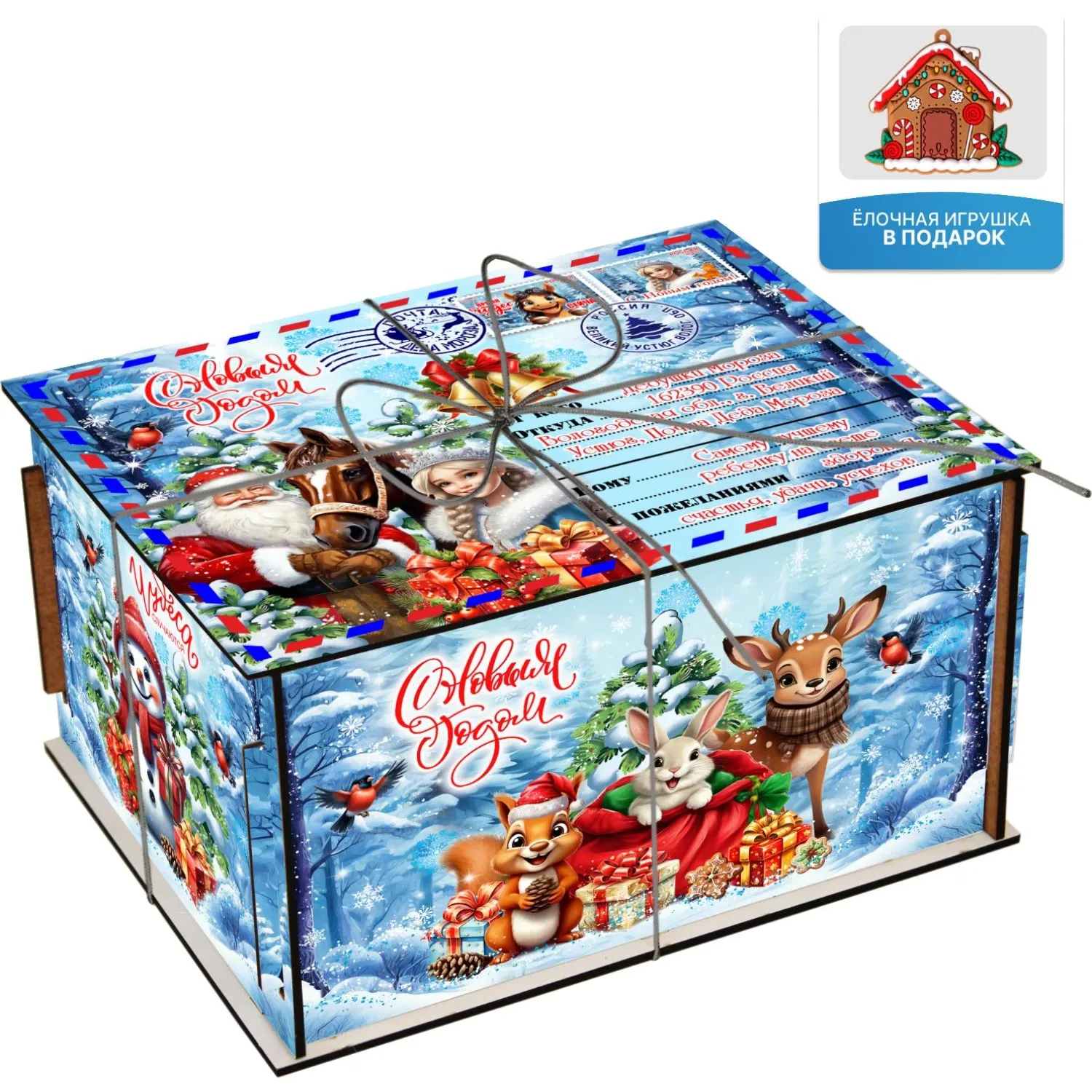 Новогодний сладкий подарок Посылка символ Фанера 500 грамм, K048