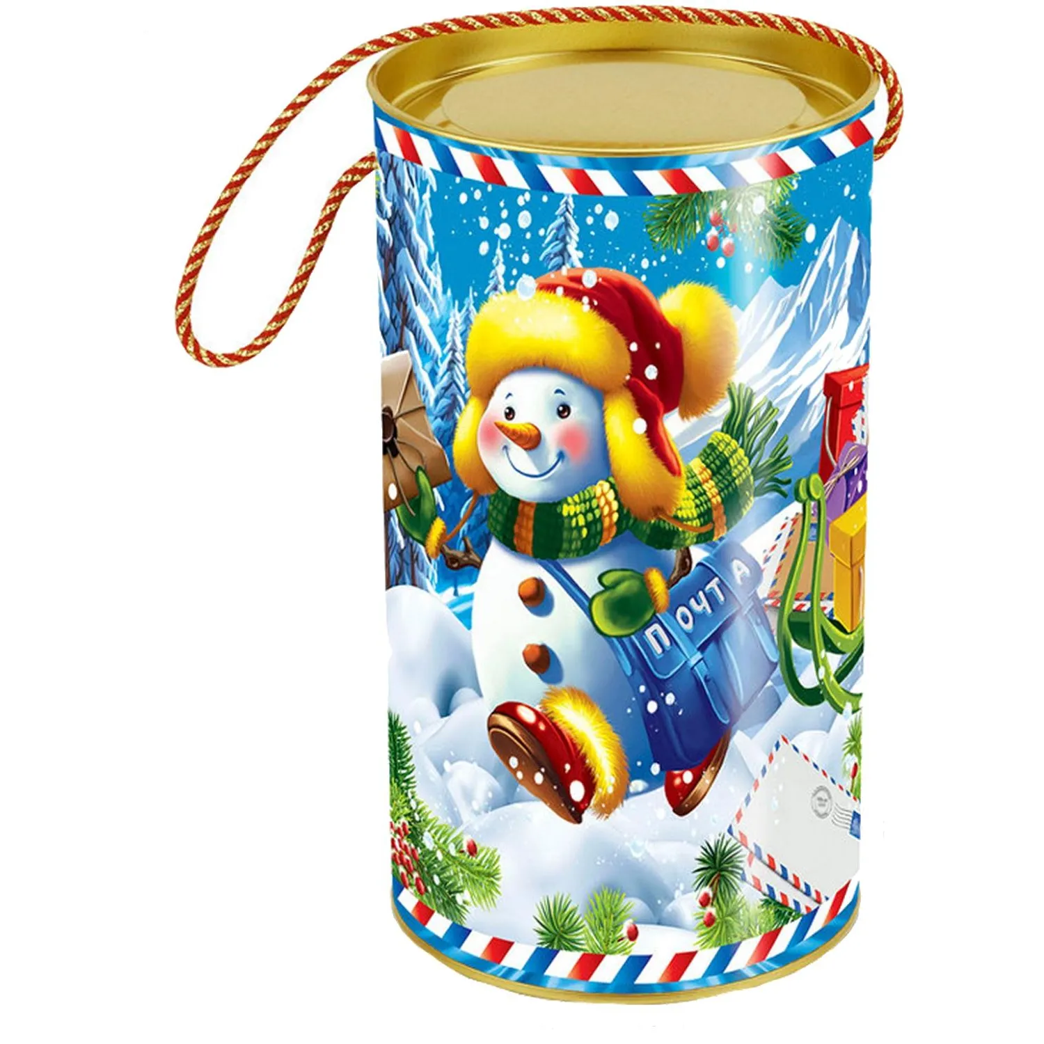 Новогодний сладкий подарок Почтальон Снеговик Туба 1000 грамм, K017