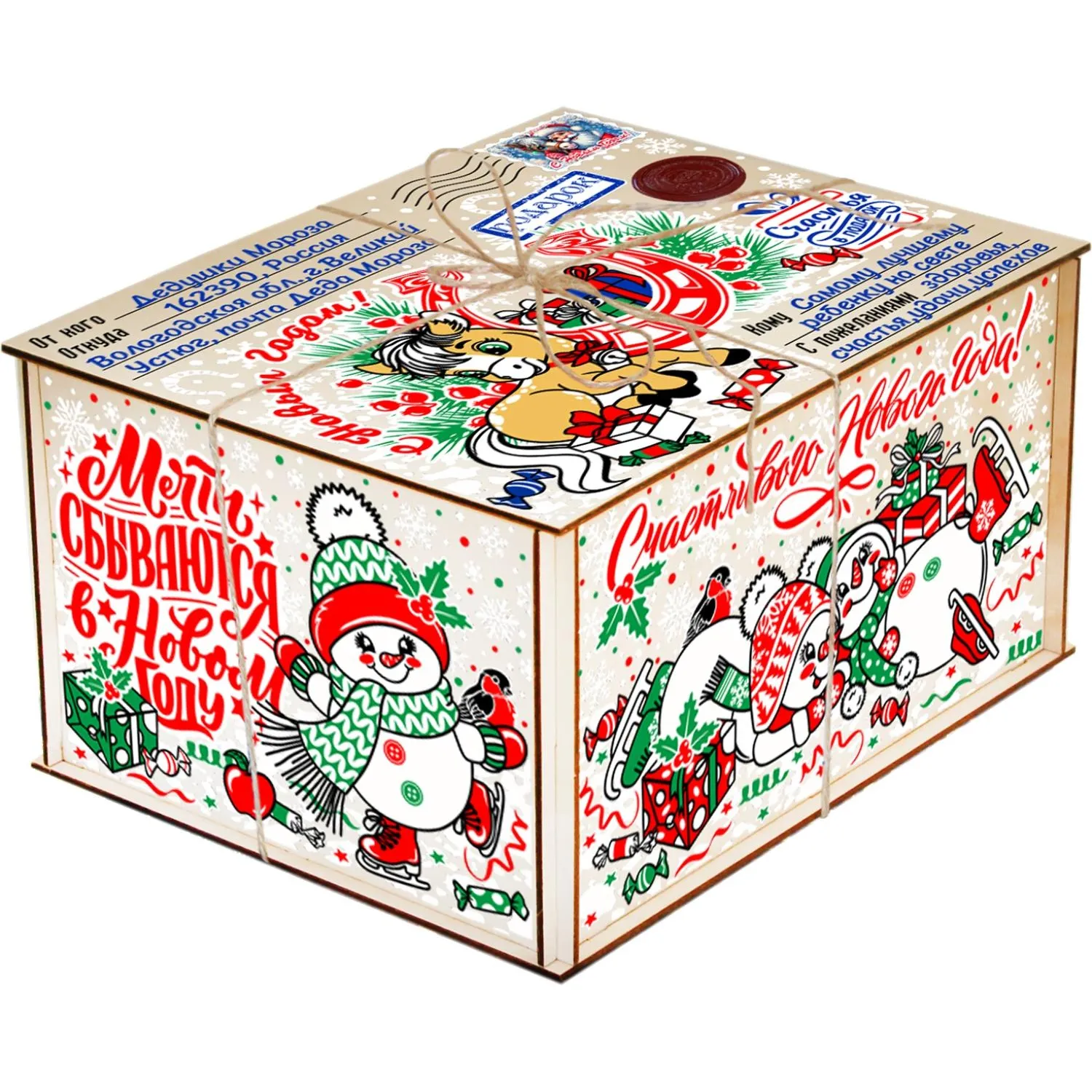 Новогодний сладкий подарок Сладкий презент Фанера 800 грамм, K051